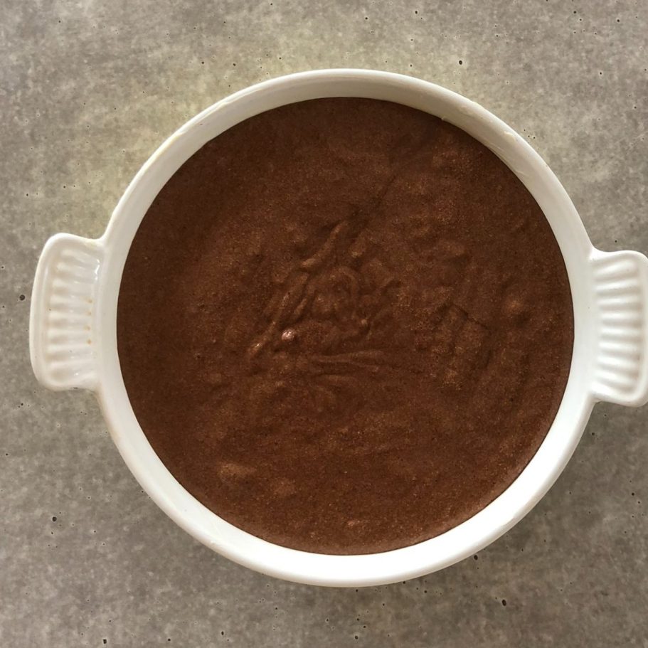 Versez le tout dans un moule à gâteau de 20cm de diamètre environ et enfournez 30 minutes à 180°C pour obtenir un gâteau savoureux, alliant les bienfaits de la farine de glands et la richesse du chocolat.